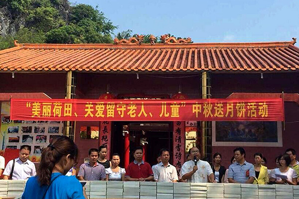 9月6日上午,广西贵港的众多富迪家人,在资深经销商曾丽华、覃泳茗的带领下,来到了位于贵港市覃塘镇姚山村的群山屯,慰问近百个孤寡老人及留守儿童,为他们送上月饼,并给他们带去中秋的节日问候和良好祝愿。此善举受到当地政府的高度关注,覃塘区政府宣传部、覃塘镇政府宣传委、姚山村村委领导及记者到现场,对富迪家人的义举、善道作了采访及报道。