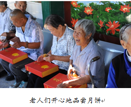 在活动的第一站,1%爱心志愿者代表将宝健营养月饼一一送到年近百岁的老人手中。拿到宝健营养月饼的爷爷奶奶感到格外高兴。甜甜的月饼吃在嘴里,却甜在心里。由于长期住在敬老院,老人们很少有机会能与别人交流,看到宝健1%爱心志愿者,他们一下打开了话匣子,就像与儿女一起唠家常一样,拉住大家聊了一个多小时。聊天的过程中,还不停地告诉大家“月饼真好吃!”