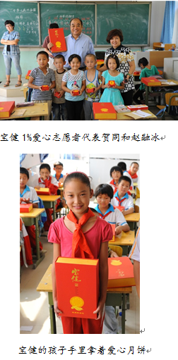 再过几天,中秋节就要到了。中秋节是一个合家团圆的日子。为了让敬老院的孤寡老人以及宝健希望小学的师生一样可以感受到节日的温馨,9月3日至5日,宝健1%爱心志愿者特将营养月饼送到他们手中,希望代表真挚祝福与关爱的宝健营养月饼,可以为他们带去节日的温暖与喜悦。