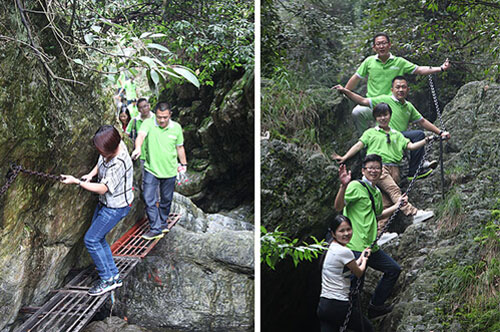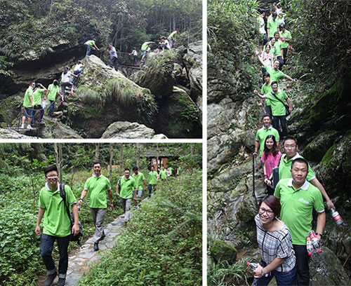 “为什么我的眼里噙满泪水,因为我对这片土地爱得深沉。”安化县冷市镇胡家村,是胡国安董事长魂牵梦绕的家乡。绿之韵大巴车载着伙伴们沿着胡国安董事长为家乡捐资修建的水泥路崎岖前行,深掩在崇山峻岭之间的“绿韵山庄”令大家神驰,左顾右盼起来。“怎么还没到,怎么还没看见啊……”,在一阵焦急万分的问询声中,一座三栋主楼耸立的大宅院渐渐映入伙伴们的眼帘。这方风水宝地,这处乡情热土,包含着胡国安董事长幼年出生、童年成长、少年立志和青年成功的全部人生缩影。下了大巴车,大家兴奋不已,乐开了锅,纷纷驻足在绿韵山庄平面示意图前,仔细察看。这哪是家宅?分明就是一个休闲度假山庄:观音塔、明珠阁、长城、怡然亭、水泉游泳池、健身园、野生猕猴桃园……一整座山,绿树红花竞芬,景致星罗棋布,构成了山庄雄伟瑰丽的轮廓,也承载了胡国安董事长为家人、为家乡、为民族争光添彩的不懈梦想。