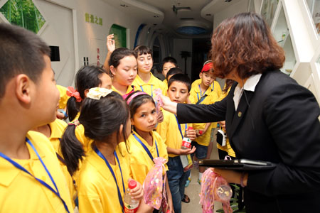 在轻松愉快的氛围中,参观活动很快就进入了尾声。在解说员的引导下,同学们来到宇航员纪念邮册前。解说员一一介绍邮册上这些为祖国实现“飞天梦”的航天英雄,激起了大家的民族认同感和自豪感,同学们纷纷说出了自己的梦想。在问到什么是“中国梦”时,同学们回答得最多的词汇是“和谐”、“和平”和“民族团结”。在青春这个敢于梦想的年纪,很多同学都将自己的梦想与“中国梦”结合在一起,立志长大后为实现“中国梦”做出更多的贡献。活动最后,新时代向所有参加活动的师生赠送了礼物以表心意。