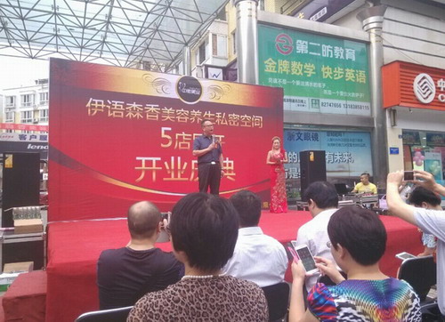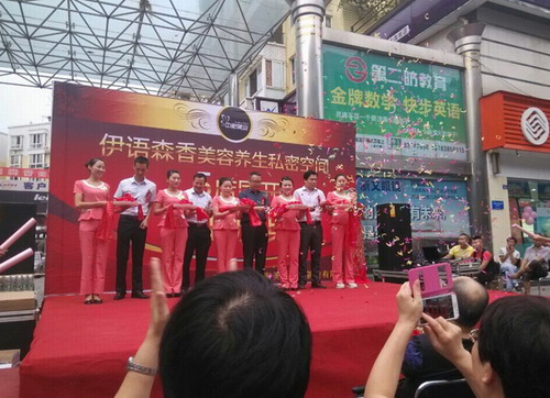 2014年9月9日,中衡美业伊语森香旗舰店开业庆典于9时正式开始。中衡健康总裁阳总亲临现场,参加剪裁仪式。参加庆典的领导还有:中衡生物教育总监宁总、客服总监徐总,中衡美业总经理王总,蜀商学院执行院长伍总,科创嘉蔓蒋总,衡慈助老马总以及市场众多领导,他们都为伊语森香旗舰店的开业送上了热烈的祝贺。