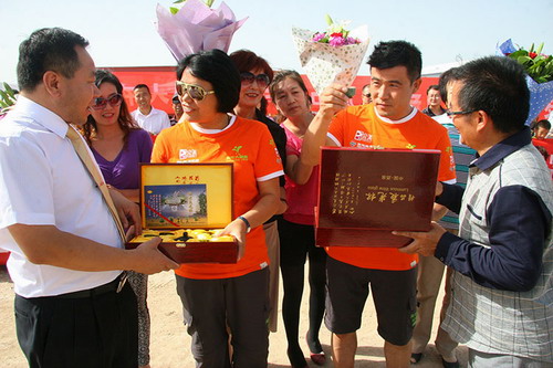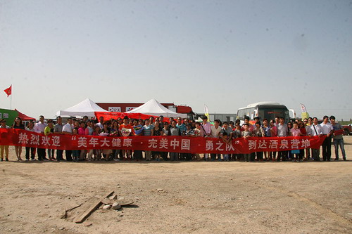 9月8日是中国越野拉力赛开赛第九天,正值中国传统佳节——中秋节。当天下午,酒泉、嘉峪关地区的完美经销商一行50人,在甘肃分公司负责人的带领下,来到酒泉大营为车队准备了心意浓浓的节日礼物。在获悉车队食用的是普通大豆油后,公司紧急调动各方面资源,在分公司、专卖店的配合下,及时提供足量完美压榨山茶籽油用以改善车队膳食水平。车队大厨收到山茶籽油时,乐开花地用四川腔普通话不停地说谢谢。当大厨从帐篷厨房拿出已经切好的西瓜时,大家纷纷放下手中的活直奔而来,我们可爱的外籍技师更是拿起大大的西瓜玩起杂耍来。当晚,赛事组委会方在酒泉当地的酒店,为近400名成员的超级家庭举办了一场自助餐式的中秋聚会。完美公司产品特能迈牌汽车燃油宝、压榨山茶籽油以及金钻肽藻月饼凭借其优良品质和口碑,顺利入围当天抽奖奖品。中奖的嘉宾更是对完美产品的实用性和公司贴心、周到的准备,赞不绝口。甘肃分公司负责人王沂彦总经理更是受邀向与会的大赛官方组委会、媒体、参赛选手,隆重地介绍公司发展历程以及产品特性和食(使)用方法。值得一提的是,20名完美经销商作为唯一一家车队赞助商代表参加当天聚会。完美经销商代表闫玉玲更是以清唱一首《不能这样活》,将晚宴现气氛推向高潮。