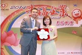 NU SKIN 奖不完,2014年再度荣获由台北市政府劳动局举办的“幸福企业奖”! 在9月15日举行的颁奖典礼中,由 NU SKIN 大中华新梦团副总裁曾惠芬代表,接受台北市长郝龙斌特别颁发幸福企业奖座。NU SKIN 将每一位同仁视为家人,持续以优异与创新的理念,舒适宽敞的办公环境,酬报优渥的薪资水平与奖金制度,丰富的福利补助与多元的培训活动,让每一位家人都能获得最幸福的工作体验。
