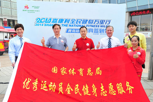 9月21日,2014嘉康利全民健身万里行活动再度走进“世界帆船之都”青岛。热情的青岛市民一大早就来到活动现场,认真为即将开始的5公里“快乐跑”做准备。随着国家体育总局人力资源开发中心主任金华省、青岛市体育局副局长李曙光以及嘉康利公司国际事业部总裁保莱福特•李察生先生共同鸣枪发令,数千名青岛市民在奥运冠军的引领之下,迎着明媚的阳光和清凉的海风起跑,沉浸在运动的快乐和健身的魅力中!