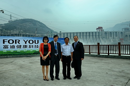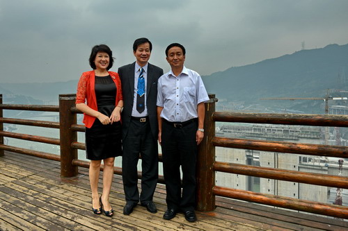 陈怀德、胡静、经销商陈文宇与高绍周在向家坝水电站前合影