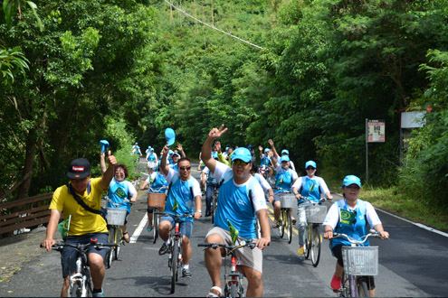行程中,为了响应9月22日世界无车日低碳环保理念,尚赫人抖擞团队热情,享受潇洒自在的“悠活”人生,在尚赫公益基金会秘书长陈政裕手持鸣枪声中启动全長7888M自行车垦丁骑行绿色环保活动,今天的环保活动,就是要每一个尚赫人在阳光、绿树的环抱中,在吐纳呼吸间,感受大自然的清明与洁净,给身心来一次舒畅的运动,在这里留下难忘的记忆,践行尚赫品牌理念。