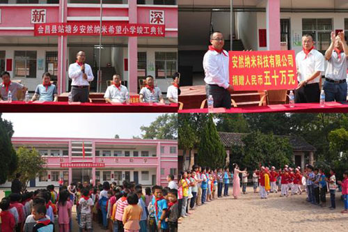 这一天,安然公司副总裁苏永涛先生、江西省会昌县团县委、县教育局、站塘乡政府等多位领导,以及站塘乡安然纳米希望小学全体师生一起度过了一个难忘的节日。为了表达心中的喜悦和感恩,孩子们穿上了平时舍不得穿的鲜艳的演出服,来庆祝这个喜庆的日子。