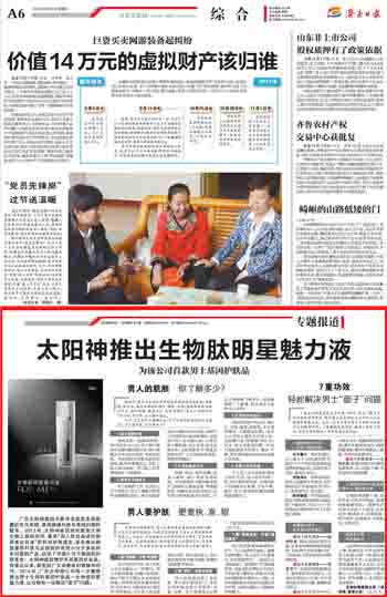 济南日报报道:太阳神推出生物肽明星魅力液
