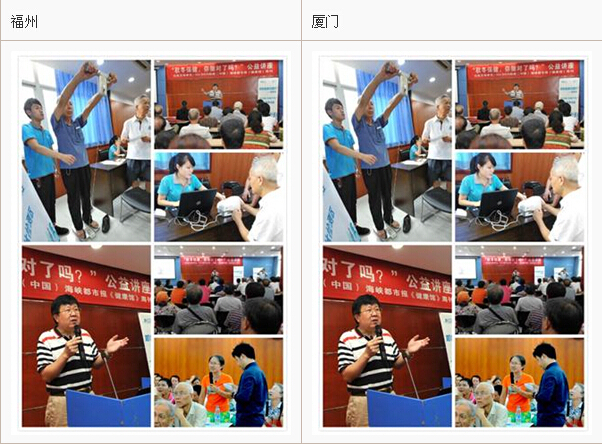 “如新健康中国行——秋冬保健,你做对了吗?”公益健康讲座分别在福州、厦门拉开帷幕。来自上海及福建的健康讲师与福建市民分享了“传统”与“现代”相互融合的符合当今社会现状的“养生观”。中医专家及保健营养讲师分别在公益健康讲座上分享了中医食疗养生与现代科学保健方面的知识。讲座开始前,如新身体检测区人头攒动,现场观众都纷纷表示第一次进行这样的身体检测,希望通过如新的检测仪器进一步认识自己目前的身体状况。讲座中途,如新讲师还带动全场进行课间小操,动动肩膀、扭扭腰,活生生地体现了如新式健康生活。