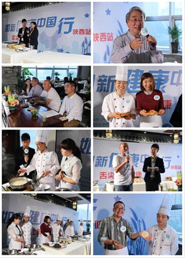 NU SKIN 如新健康中国行陕西站—“舌尖上的健康”落地活动在西安陕菜研究基地举行。活动中,陕菜大厨们现场一对一教吃货网友制作最受欢迎的陕西小吃,并邀请陕西省保健协会营养保健专业委员会常委李文栋、著名美食评论家“老班长”以及 NU SKIN 如新抗衰老科研顾问团的马志英教授进行现场点评,倡导健康的陕西饮食观念,引发更多公众关注健康。活动前期,NU SKIN 如新联合本地媒体开展了近一个月的“老陕一日三餐都吃啥”问卷调查,约有2000人参与了此项调查。随后,又通过微信公众号平台组织了“周末做健康大餐”比赛,从上百名参赛者中评选出了20名“健康吃货”,来向陕西大厨学做小吃。