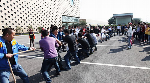 趣味运动会有齐心协力、袋鼠跳、拔河、自行车慢骑等活动项目,团体赛和个人赛轮流进行。供应链体系的部门领导也积极参与,带着部门人员奋力争先,既活跃了气氛,也鼓舞了士气。