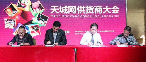 2014年10月15日下午,绿之韵集团天城网(www.TC38.CN)第九届供货商大会在集团总部贵宾楼成功举行。时至今日,九场供应商大会已落下帷幕,天城网与实力供应商所建立的长期稳定的合作关系,令双方加深了解,合作共进,为未来双赢发展夯实了基础。本次供货商大会几百名商家代表心怀憧憬进入招商大会会场,会场内座无虚席,来自服装、五金、食品、电子产品、珠宝、家居等多个大类目的300多家供应商参加会议。此次的招商会,天城网让到场商家充分见证了绿之韵集团天城网的高水准,众商家均对天城网表现出了强烈的合作意向。继多次与中国联通、安普瑞商务餐饮管理有限公司等多家知名品牌供应商签约之后,本次又与美兰坊(湖南)化妆品有限公司、河北省刘美实业有限公司、好美莲家私厂等20多家知名品牌供应商现场签订合约,预示着绿之韵集团天城网电子商务平台又向前迈进一步。