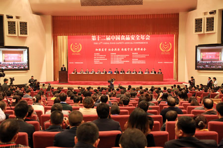全国人大常委会副委员长陈竺宣布大会开幕。全国政协副主席齐续春,十届全国人大常委会副委员长、中国关工委主任、中国食品安全年会组委会名誉主任顾秀莲作重要指示。中国食品工业协会会长石秀诗致开幕词,参会的国务院各部委办局相关领导先后作了发言。随后,与会企业家代表共同宣读食品安全誓词,即始终坚持科学发展,忠诚履行社会责任;坚决遵守法律法规,严格执行规范标准;积极配合政府监管,主动接受社会监督;建立健全诚信体系,执着追求高端品质;模范践行职业道德,自觉固守行业自律;矢志确保食品安全,共铸美丽“中国梦”。