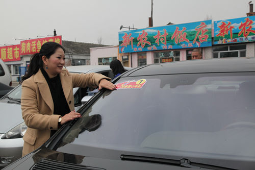 10月25日清晨,赵杰副总为爱心车队贴上车标