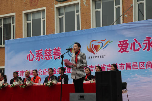 吉林昌邑区尚赫赵杰小学吴涛校长在现场致词
