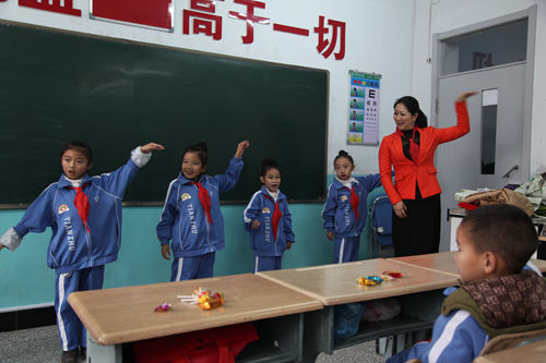 赵杰副总来到学生们的班级中,与孩子们一同表演节目