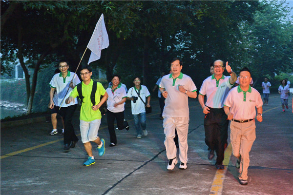 10月27日清晨,阳光冲破了重重雾霭,凉风吹散了厚厚云层,一缕缕的柔光,在天边唱起了东升的歌谣,氤氲着片片霞彩。在这个美好的清晨,陈怀德先生与公司高管融入到全体学员当中,身披整齐划一的运动服,蓄势待发,迎接全程5公里的健康跑。