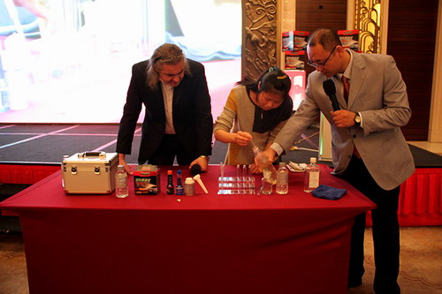 在空气净化机讲解环节,来自生产厂家的技术专家陈创滨先生同样也为大家带来了精彩的演示。通过密闭环境烟雾测试,在场的每一位都亲眼见证过了空气净化机强大的净化能力,短短几秒钟时间,密闭箱内的烟尘就不见踪影,仪表上的数据也显示空气质量明显好转。看到这里,现场爆发出一阵阵经久不息的掌声。