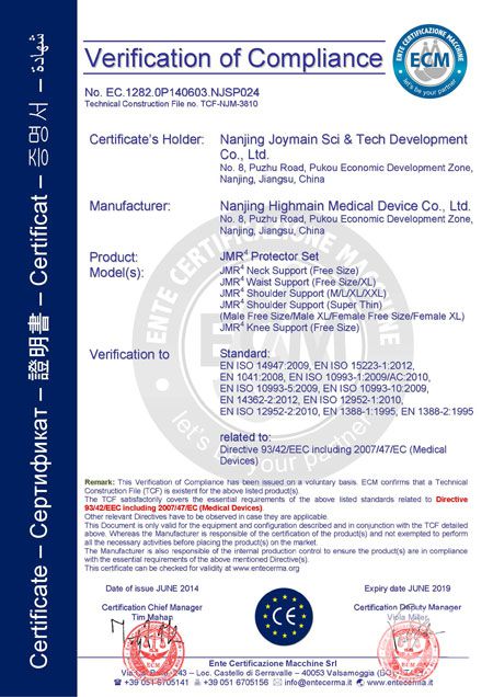 中脉科技远红镇痛护具系列获欧盟CE认证证书
