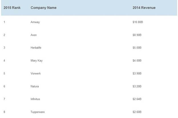 2015年4月8日,直销新闻网(Direct Selling News,简称DSN)在全球直销企业百强榜的发布仪式上宣布,美国安利公司荣列“2015年全球直销企业百强”榜单首位,这已经是安利公司连续三年获得榜首位置。