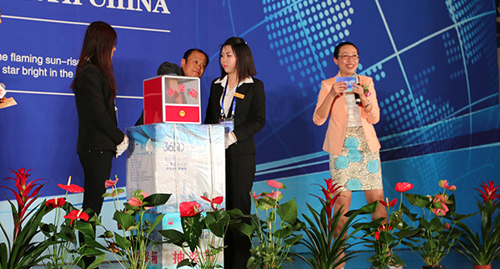 金日制药全球总监王正亭女士为家人们抽取大会一等奖