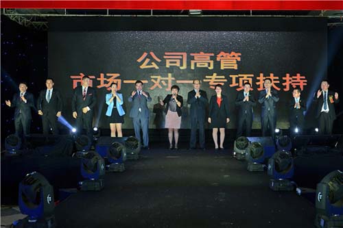 毛淑华女士代表富迪公司管理团队在本次表彰大会上正式宣布推行市场一对一专项扶持政策