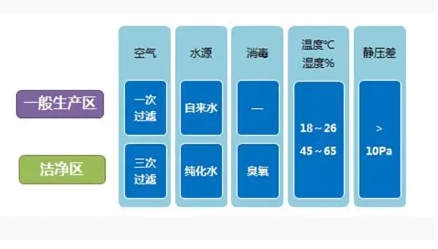 遵循动态GMP的标准,洁净区有非常高的环境要求。公司的QC人员定期对洁净区的沉降菌、浮游菌及颗粒等项目进行测试验证。除此之外,工厂的生产区还特地做了人性化的设计要求:车间墙面、房顶由彩钢板架构而成;地面由环氧树脂水平铺设;水电管线全部通过夹层和墙体;墙面与地面及房间顶部交界处成圆弧形,表面平整光滑、无裂缝、接口严密、无颗粒物脱落、耐受清洗和消毒,环境卫生易于清洁及保持。