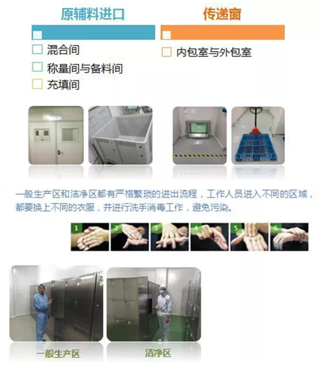 工厂采用多种方式进行物料传送,并且一般生产区和洁净区都有严谨的进出流程,工作人员进入不同的区域,都要换上不同的衣服,并进行洗手消毒工作,避免污染。