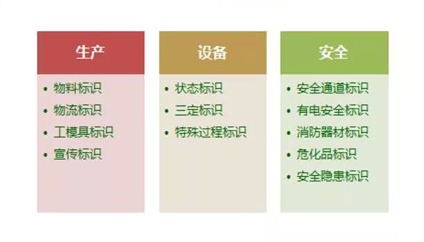 工厂各处都能见到清晰简单的各类标识,遵照法规运用红,黄、绿三种不同的颜色对各位物品进行标记。