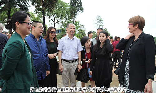 九点半到达衡阳春天服务中心时,活动现场已然是一片欢乐的海洋。衡阳春天服务中心的新家院子用鲜艳的花朵装扮一新,小朋友们穿着漂亮的衣衫,拿着彩色的气球,在护理员的陪同下玩耍。还有很多和绿之韵人一样的爱心人士、志愿者以及远道而来的国际义工们都欢聚在此。没有陌生与隔阂,不分国籍和语言,胡国安董事长和劳嘉副总裁带着绿之韵志愿者们和孩子一起说话、唱歌、做操……每一个人脸上都洋溢着快乐纯粹的笑容。