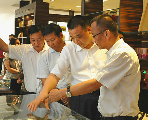 5月12日下午,云南省普洱市委书记卫星、云南省政府驻深办主任李红梅率领普洱市委常委、思茅区委书记毛保祥,副市长杨林,市政府秘书长杨彬,宁洱县委书记李鸿,孟连县委书记刀锋,市招商局局长龙垂东等有关单位领导到我公司深圳管理总部考察交流。康美药业董事长、总经理马兴田,副董事长、常务副总经理许冬瑾进行了热情的接待。