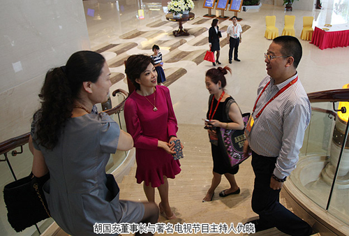 陪同领导巡馆以后,胡国安董事长对本次矿博会成功举办高度评价:“国际矿博会的举办,让‘湖南走出去’战略得到了充实提升。这么多国家参展,必将吸引全世界的目光,这对于湖南文化和湖南经济社会来说,是一个天然的展示机会。湖南应充分利用博览会搭建的平台,‘把会展与文化、旅游、科技、信息、商贸、物流更好地结合起来,着力推动会展经济和现代服务业加快发展’”。他表示:湖南地处中国中部城市要冲,无论是地理位置还是区位优势来看,都是属于发展要冲,加上洞庭湖国家级生态经济区和长江经济带的确立,更突显了湖南的发展优势。推动会展经济发展,这是现代经济发展的一个重要支撑,如果与湖湘文化和大湘西旅游资源及商贸物流进行融合发展,这就让湖南经济具备了强大的内生动力,为湖南改革开放提供了一个天然的通道和平台。所以,我们既要关注这次郴州矿博会的盛况,更要与湖南未来的发展结合起来看,目光不限于一隅,思路才会天地阔。