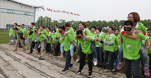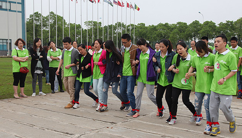 在千龙湖度假村的活动草坪上,活动组委会将所有参加活动的员工分成了六组,在六个小组间展开了别开生面、妙趣横生的趣味竞技活动。在绿之韵集团董事长胡国安先生、董事常务副总裁劳嘉女士的亲切指导下,在现场工作人员的精心组织和安排下,六个小组各推选出一个组长,并带领所有组员充分参与“长龙越岭”、小组接力、绑腿赛跑等团队协作拓展活动。