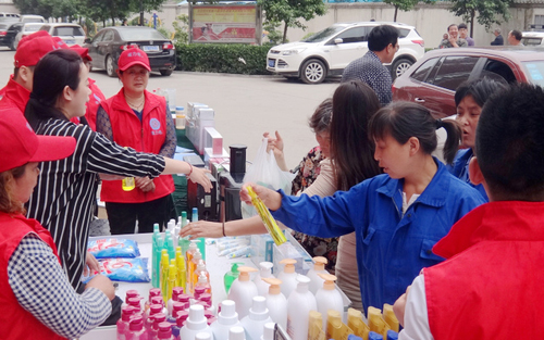 活动在上午9时准时开始,社区居民闻讯纷至沓来,争相购买物美价廉的隆力奇产品。活动现场,爱家店展销产品有洗发、沐浴、花露水、香皂、牙膏、洗手液、皂粉等,店员的耐心、细致、专业的产品讲解得到了社区居民对隆力奇产品的赞美、对店员的称赞。社区居民纷纷购置各种生活日化用品,展销现场气氛热烈、销售火爆。