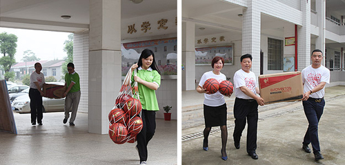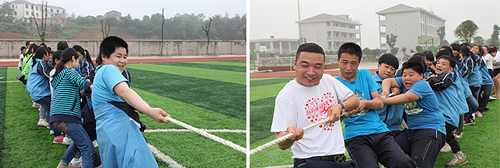 捐赠活动结束后,在胡国安董事长、劳嘉副总裁的亲自带领下,绿之韵的爱心志愿者及经销商们还与学校师生互动,进行拔河比赛、乒乓球比赛,现场同学们热情高涨,欢呼声、加油声此起彼伏。