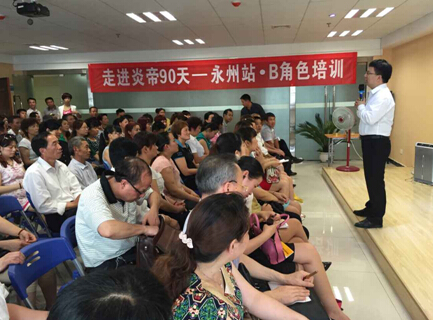 2015年5月27日走进炎帝90天在永州顺利举办了B角色培训,与会人数145人。闷热的天气并没有阻挡炎帝伙伴的学习热情,会议一开场先由永州分公司经理冯龙珲致欢迎词,并讲解《商德约法》,结合工作中的实际情况让会员了解规范经营的重要性和安全性。接下来是由领袖学院讲师叫思成讲解神采飞扬,其幽默、风趣的讲解让大家知道什么是美丽人生,激发现场的所有人在炎帝事业中去实现自己的美丽人生。新老朋友济济一堂,会场掌声不断,笑声不断。会后会员反应他们太需要这样的培训了,同时觉得这场培训举办的非常及时,通过学习,掌握方法,势必市场做得更好更大。