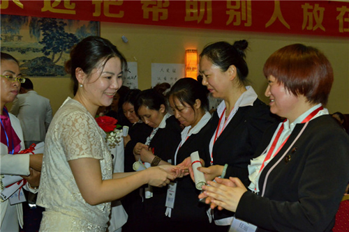 张菡女士为通过考核的美容导师们颁发毕业证书
