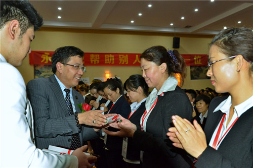 沈堂仁先生为通过考核的美容导师们颁发毕业证书