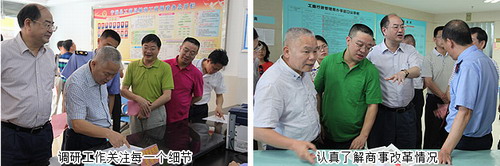 按照湖南省政府工作部署,湖南在全省启动注册资本登记制度改革,同时将长沙、郴州列为工商登记前置审批制度改革试点城市,并在永州、郴州两地试点“三证合一”(工商营业执照、组织机构代码证、税务登记证)登记制度改革。2015年6月2-5日,湖南省政协常委、经科委主任吴金明,省政协常委、财政部驻湘监察专员周伟华,省政协委员 、省工商局特邀民主监督员、绿之韵集团董事长胡国安等一行赴郴州、永州调研“商事制度改革”,并认真听取了各地工商局商事制度改度工作情况汇报。湖南省工商商局副局长阳芳华、省工商局注册局副局长潘晓峰等陪同调研。