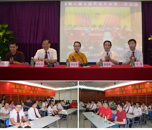 深圳市第六届人民代表大会第一次会议胜利闭幕后,6月5日,荣格科技集团组织召开宣贯会议,由深圳市人大代表、集团总裁孙小玲传达深圳市六届人大一次会议精神。荣格科技集团党委书记陈长志,集团董事长路德场,集团董事局主席孙会喜,集团董事、荣科化妆品公司总经理王军以及集团中高层管理人员参加了宣贯会议。