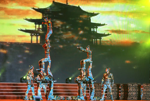 看傲骨擎天,众志成城,期间由天津杂技团的舞者带来的《威震雄风》表演同样是带给观众不小的震撼,节目中抛360度接趴炫、一字抖飞、单板小翻转体、板上站脚站肩两周下等动作让所有人为之疯狂。