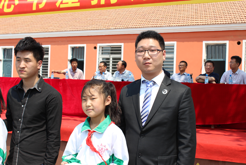 校长张伯安代表学校向公司回赠锦旗,“爱心奉献满校园,书卷墨香传真情”这14个金色大字表达了校方的感谢;小学生代表的发言充满了对新时代爱心人士的感谢和感恩。