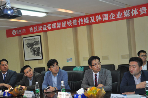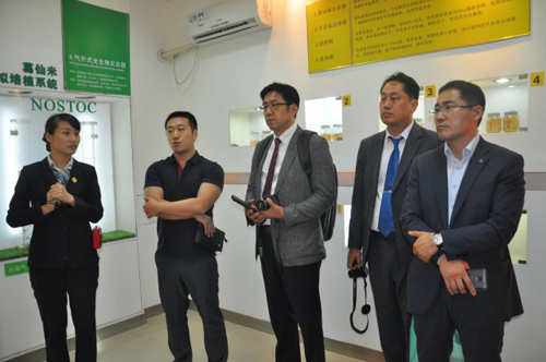 2015年6月8日,由KOSSA公司总经理KIM TAE OH、韩国直销杂志发行人KIM SUN HO、ATOMY公司海外市场总监LEE HYUNWOO、台湾市场总经理KOO SONG MO以及RUAN KOREA公司总裁PARK IN CHEON组成的韩国考察团,在帝瑞集团总裁蔡尚融、候普媒体资深编辑记者周青等人的陪同下,来我公司进行参观考察。湖南炎帝生物工程有限公司副总裁、电商中心总经理杨健新、行政中心副总经理万义以及电商中心副总经理田凯天等公司领导代表公司迎接并陪同考察团参观考察。
