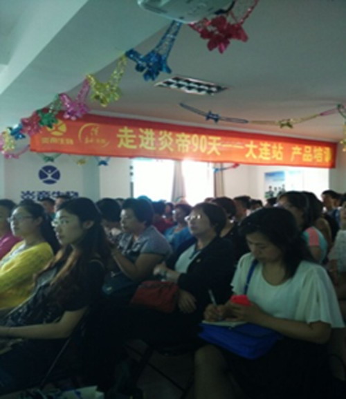 2015年6月7日下午,“走进炎帝90天”系列之健康产品培训课程在辽宁分公司大会议室如期举办。领袖学院胡博闻担任主讲嘉宾。英俊潇洒学识渊博的胡博闻讲师以现今人们的亚健康身体状况为开场,将经销商们牢牢吸引,接着隆重介绍和讲解公司的一系列拳头产品,蛹虫草子实体、金苓胶囊、壳聚糖、葛仙米营养餐、维楚洗护系列等等,课程精彩纷呈,受益颇多。