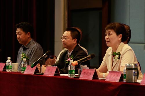 云南中医学院校长李玛琳(右一)讲话