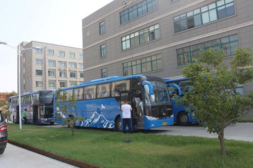 早上8点,一排豪华大巴整理地候在园区,8点20分,员工登上大巴开始樱桃采摘之旅。10点整,大家在满车厢欢声笑语中到达目的地。