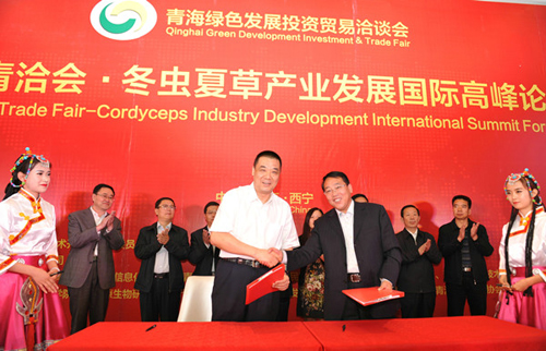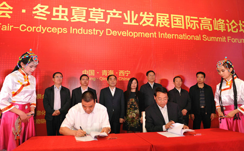 6月17日,在2015青洽会·冬虫夏草产业发展国际高峰论坛举行期间,康美药业与青海大学本着“校企合作,互利互惠、资源和优势互补”的合作精神,根据双方需求和实际情况,就重点在奖学金设置,科研合作,特色中藏药材地方标准制定,国家及地方重大科研项目联合开展,学术交流与合作、成果转化,联合国际科研机构开展科研建设、合作,人才培养,网络医院平台等展开全方位合作事宜进行了战略合作协议签订仪式。