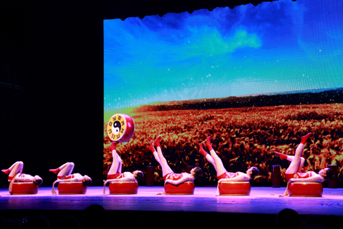 在接下来的文艺演出中,精彩的杂技,动人的歌曲,曼妙的舞蹈将整场演出推向一个又一个高潮。群体杂技《蹬鼓》诙谐、幽默,高难度双人杂技《神话--飞天》惊险、刺激,博得了观众的阵阵喝彩。庆典过程中,来自全国二十多个省地市的航天生物同仁们也通过微信平台纷纷发来贺电表示祝贺,使整场演出更加精彩而热烈。