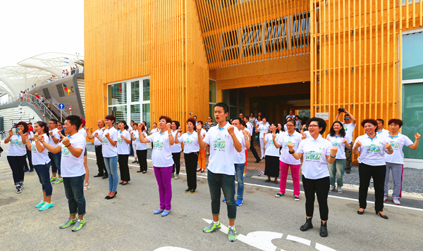 亲爱的家人们,米兰之行刚刚开始两天,我就已经按耐不住想和大家分享了。此次的旅游与以往不同,不仅突显了天士力在的国际市场的影响力,更体现了金士力佳友的创新力。100多位参加米兰之旅的家人云集在中国企业联合馆那一刻,统一的服装,统一的手语舞,无疑是成为了此次世博会上一道靓丽的风景线,非常引人注目!在大家集体展示手语舞时,一种使命感油然而生。我为我是天士力人而自豪!我为我是金士力佳友人而骄傲。
